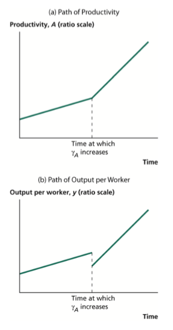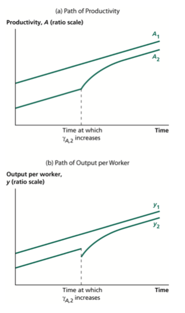 γA2 ↑ → Short-term increase in 2’s productivity growth rate.