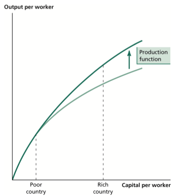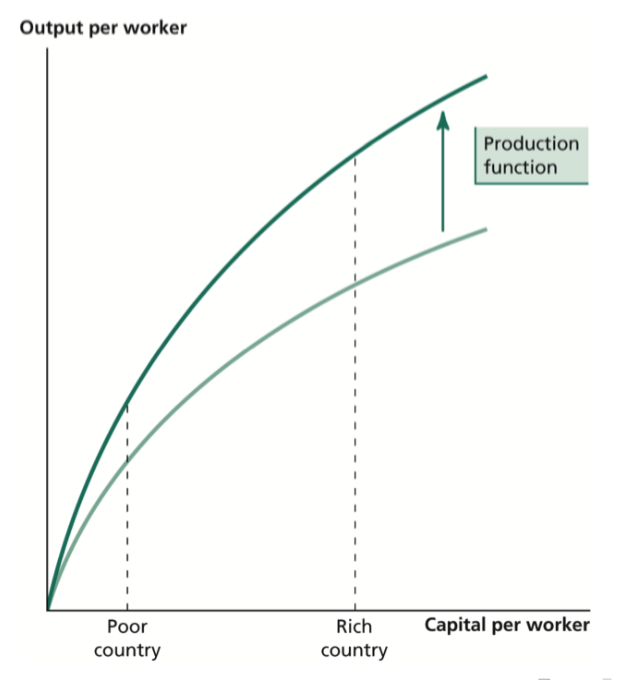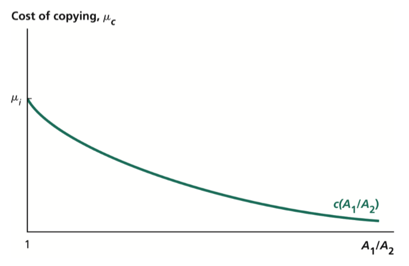 f’ < 0 (imitation cheaper if the technology gap is large).