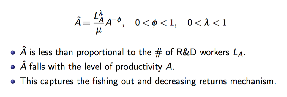Here, in steady state, productivity growth can only occur with continuous expansion of the R&D sector.