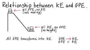 What is the relationship between GPE at the top of a slide and KE at the bottom of the slide?