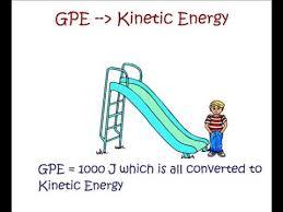 If a child has 1000 J of gravitational potential energy at the top of a slide, how much kinetic energy do they have at the bottom of the slide?