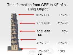 If an object is dropped from the leaning tower of Pisa, how much initial GPE does an object have 3/4 of the way down?