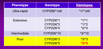 Pharmacogenomics of codeine bioactivation