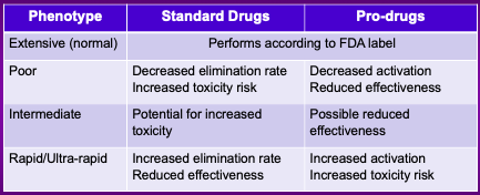 Drug metabolism phenotypes with performance relevance for standard vs prodrugs