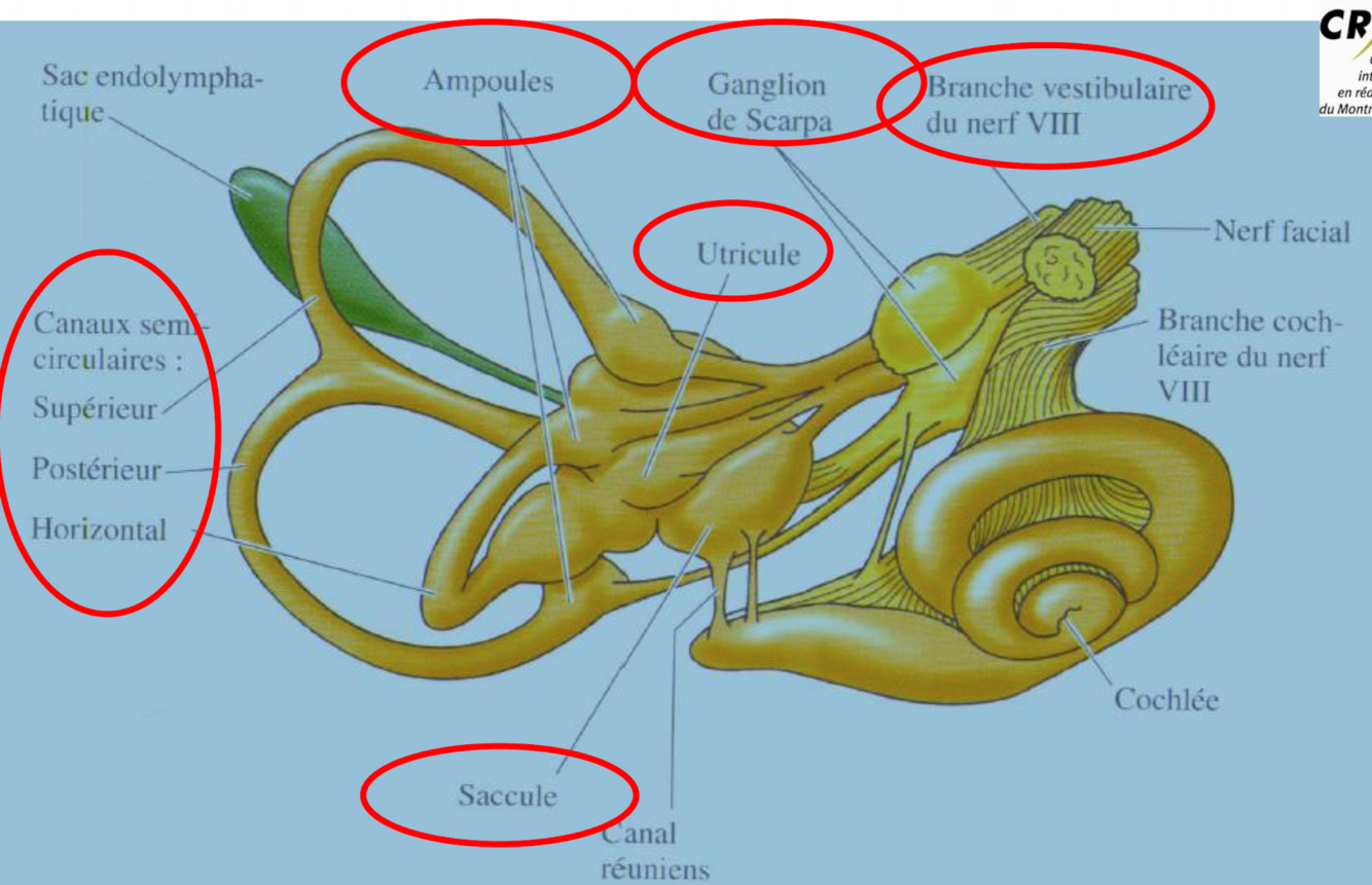 Quelles structures font partie du système vestibulaire périphérique?