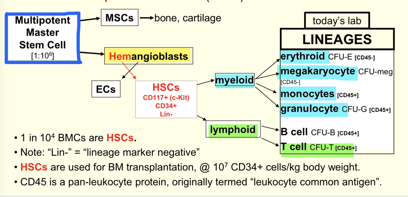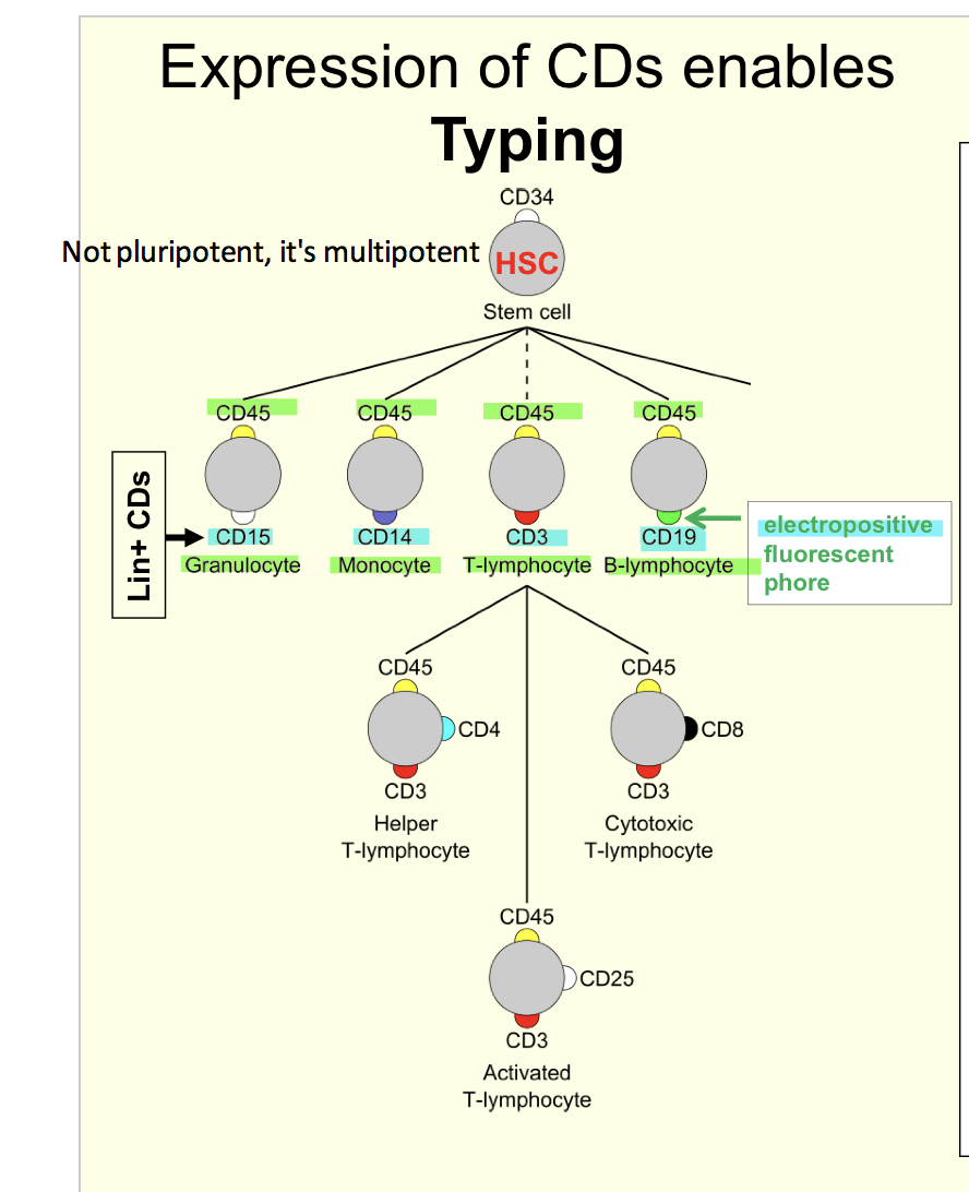 Note that cells after HSC are all lineage positive because they have CDs.