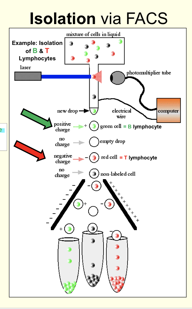 How are cells sorted through Fluorescent-Activated Cell Sorting (FACS)?