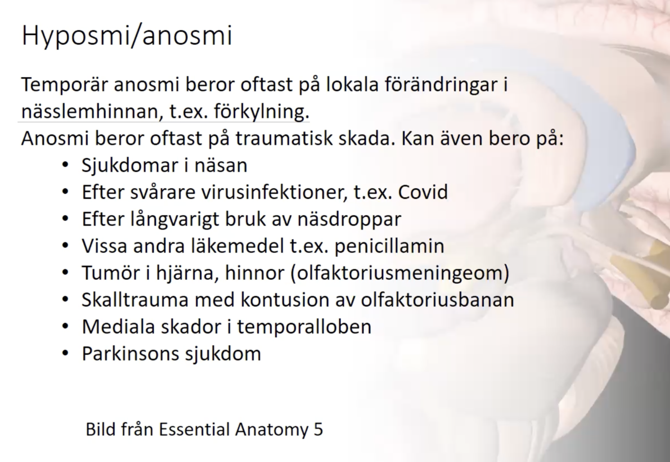 Temporär anosmi är väldigt vanligt och beror oftast på lokala förändringa i nässlemhinnan, som förkylning.
