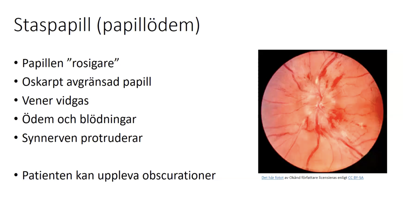 Titta in i ögat på ögonbotten, ögonbottenspegling (undersöka papillen, dvs synnervens inträde i ögonbotten):
