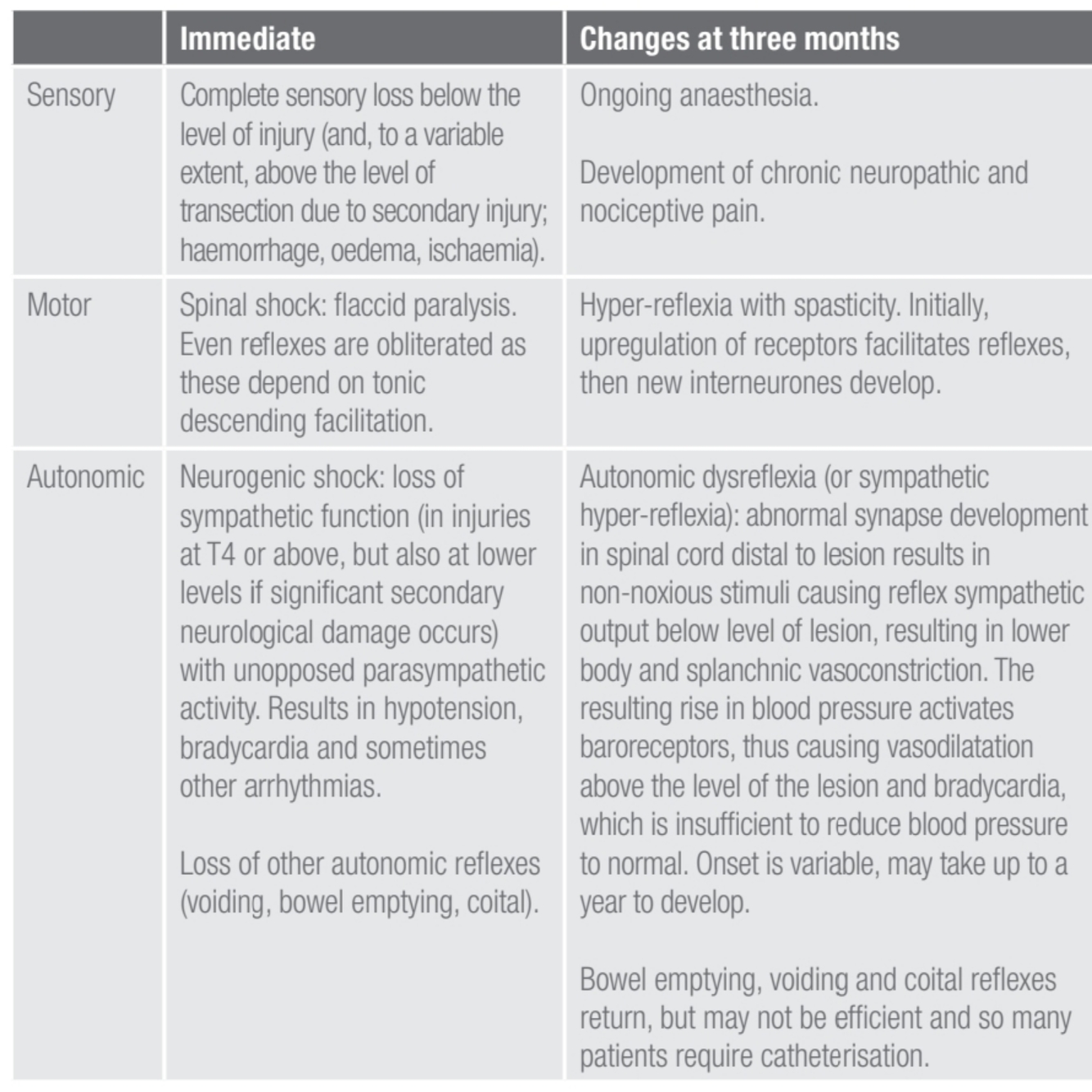 a) Outline the sequence of neurological effects that may develop in the first three months following injury.