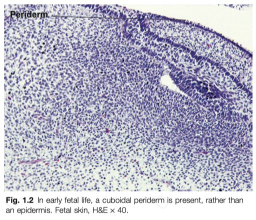 During the first weeks of life, the fetus is covered by a layer of nonkeratinizing cuboidal cells called the