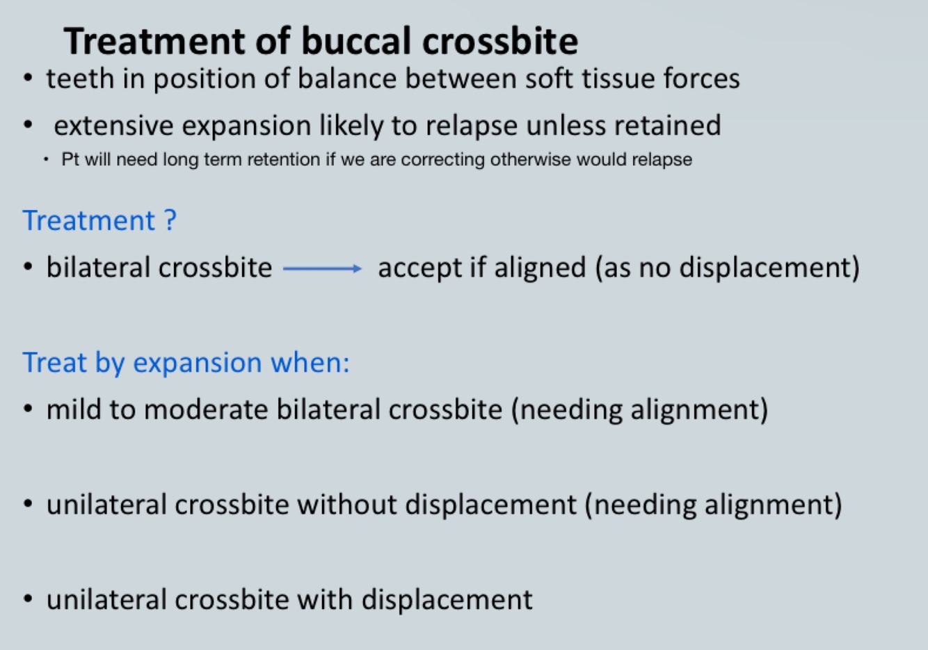 If with mandibular displacement - the patient is closing cusp to cusp in buccal segment -and mandible is displacing to one side - need to expand bilaterally