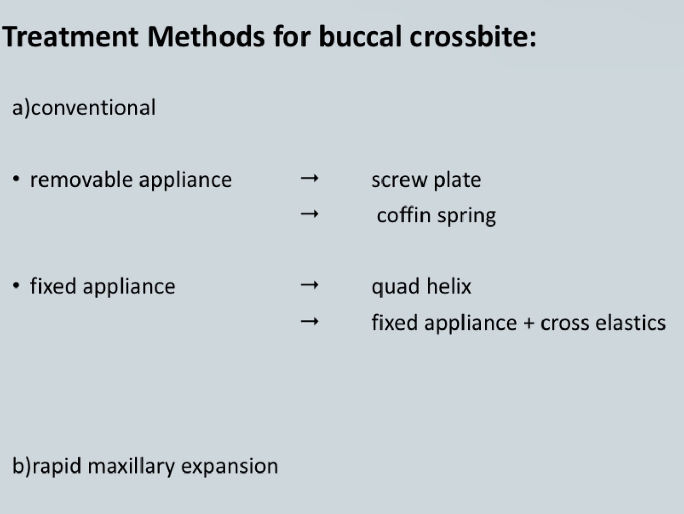 Conventional methods for buccal crossbite