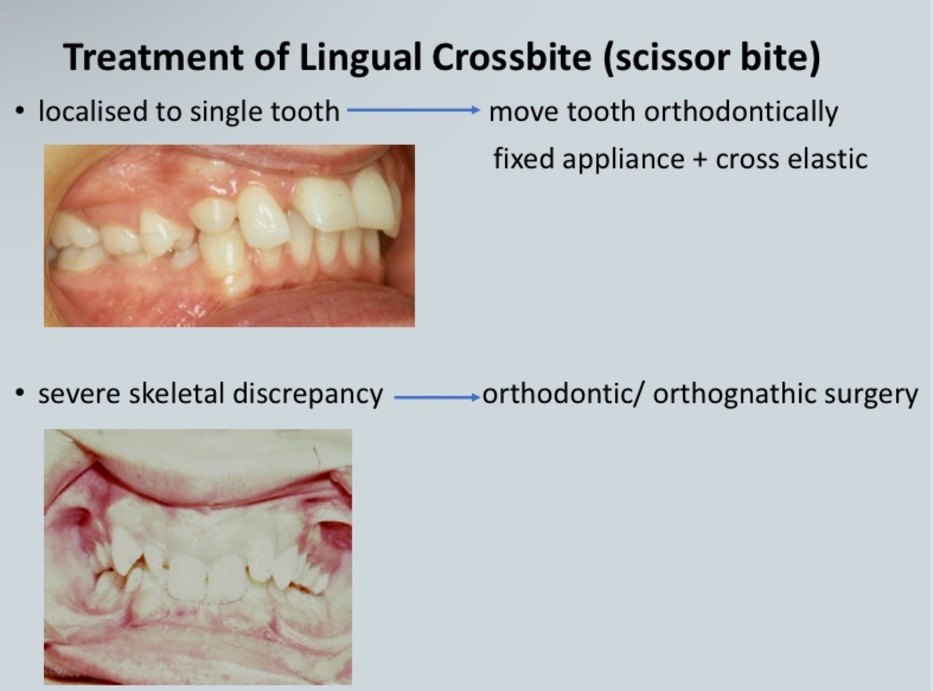 - mild to moderate -> treat orthodontically
