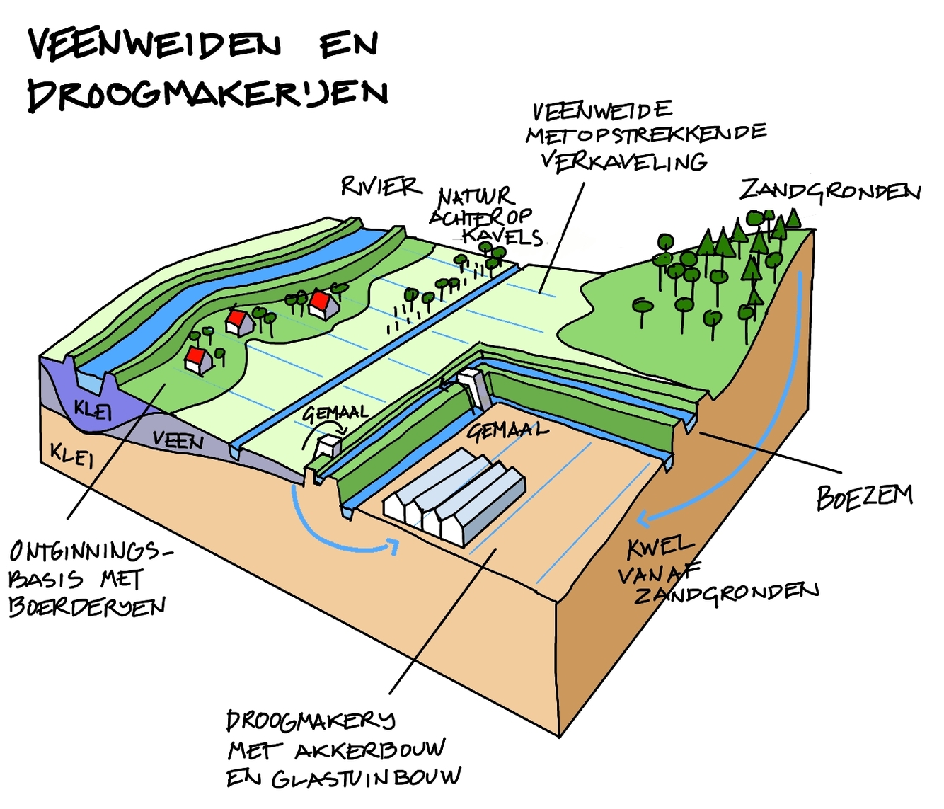 De waterschappen zorgde er, na de ontginning en inklinking van het West Nederlandse veengebied, voor dat