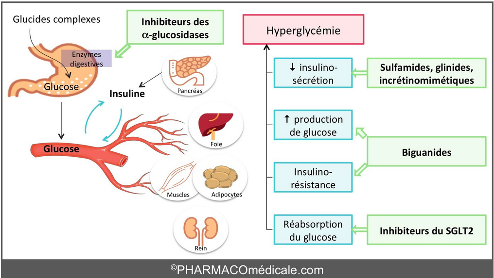 C. Inhibiteurs de l’alpha glucosidase (ex : acarbose)