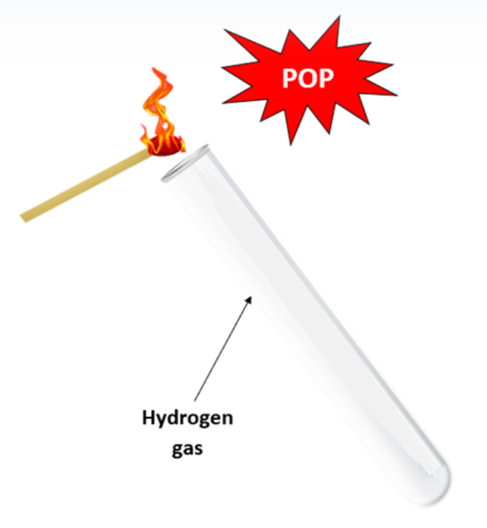 Introduce a lighted splint to the gas. Hydrogen burns with a ‘pop’ sound.