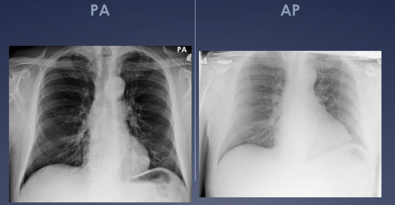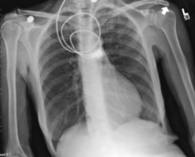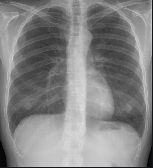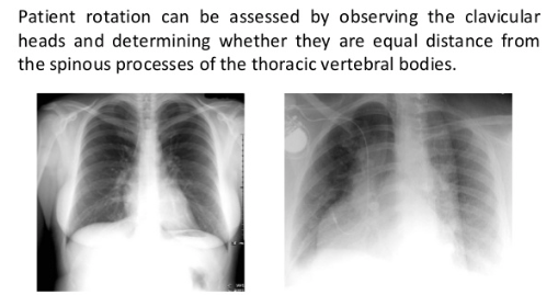How can we tell there is no rotation on towards the detector on a chest x-ray?