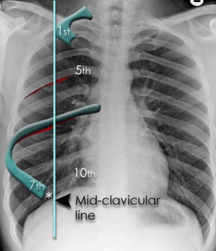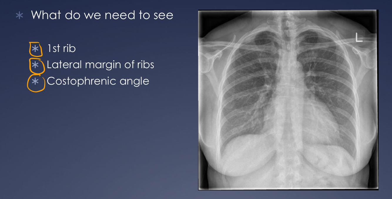 What might be the pathology if the 1st rib is not visible on chest x ray?