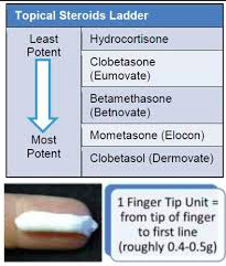 1st Line/Flares: Emollient like E45/Aveeno with topical steroid if red and inflammed