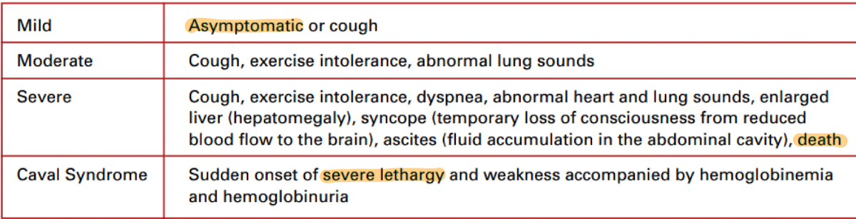 severity of heart worm is based on
