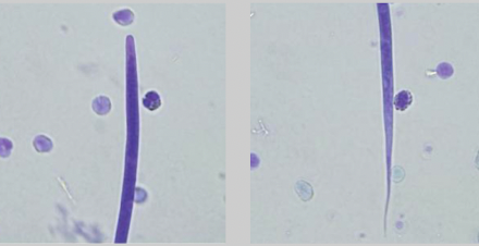 microfilariae testing- modified knotts and blood smear looking for babies