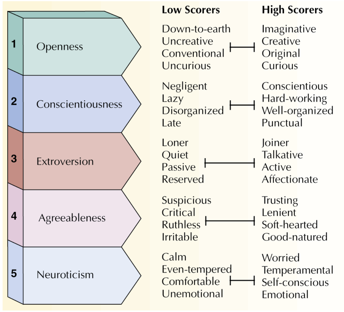 Explain the big five factors of personality