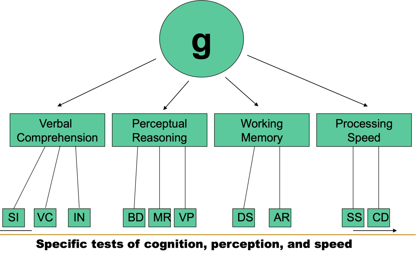 Basically what is measured in IQ test and mapped onto Wechsler intelligence scale