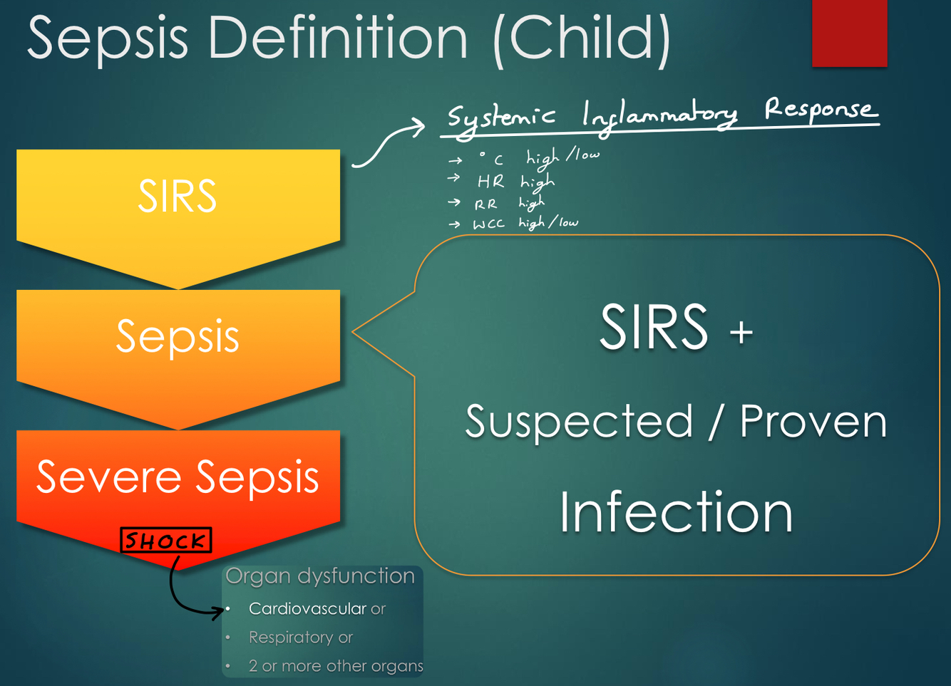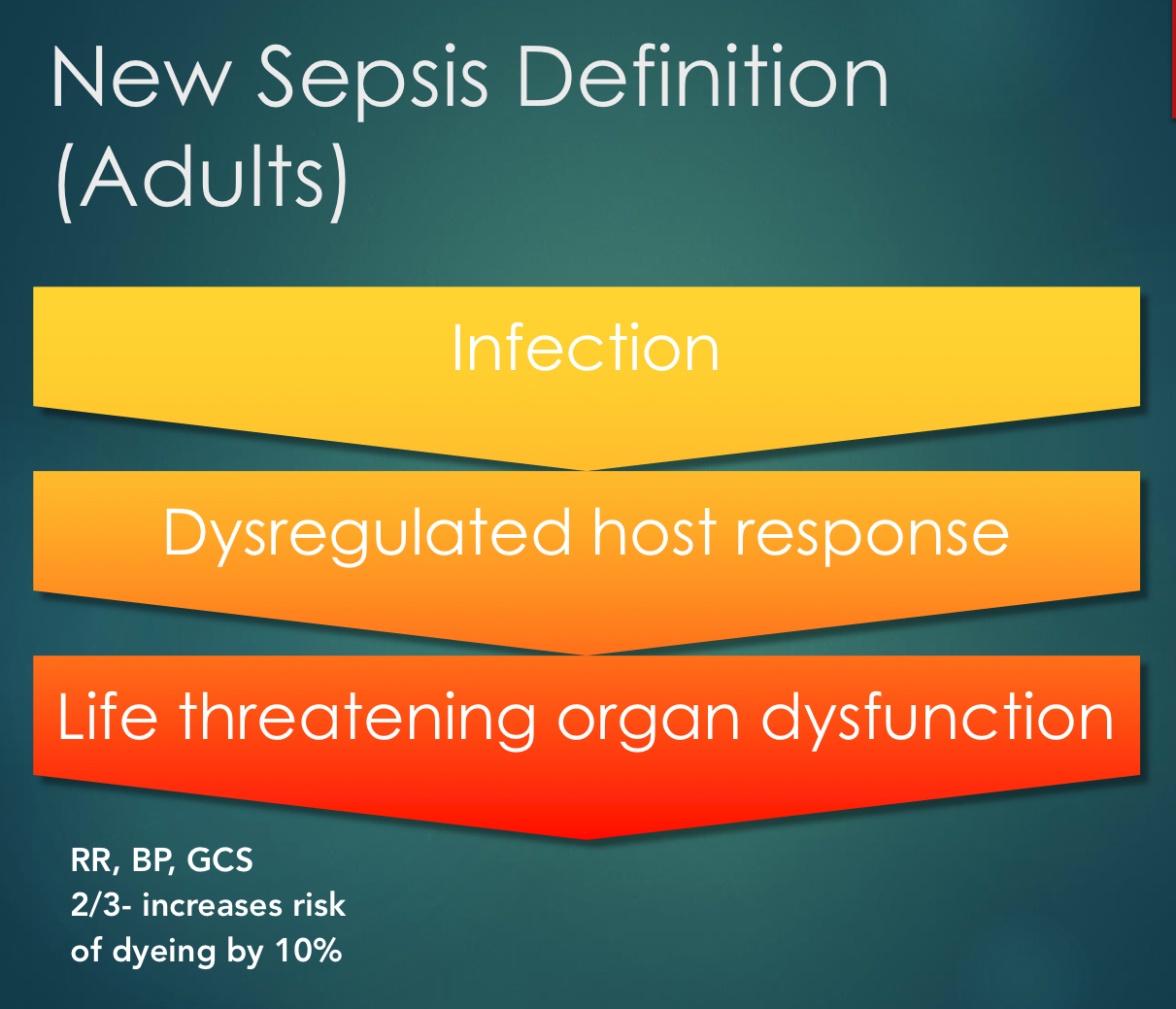 What is the adult definition of sepsis? What measurements are taken initially to help us determine if a patient has sepsis?