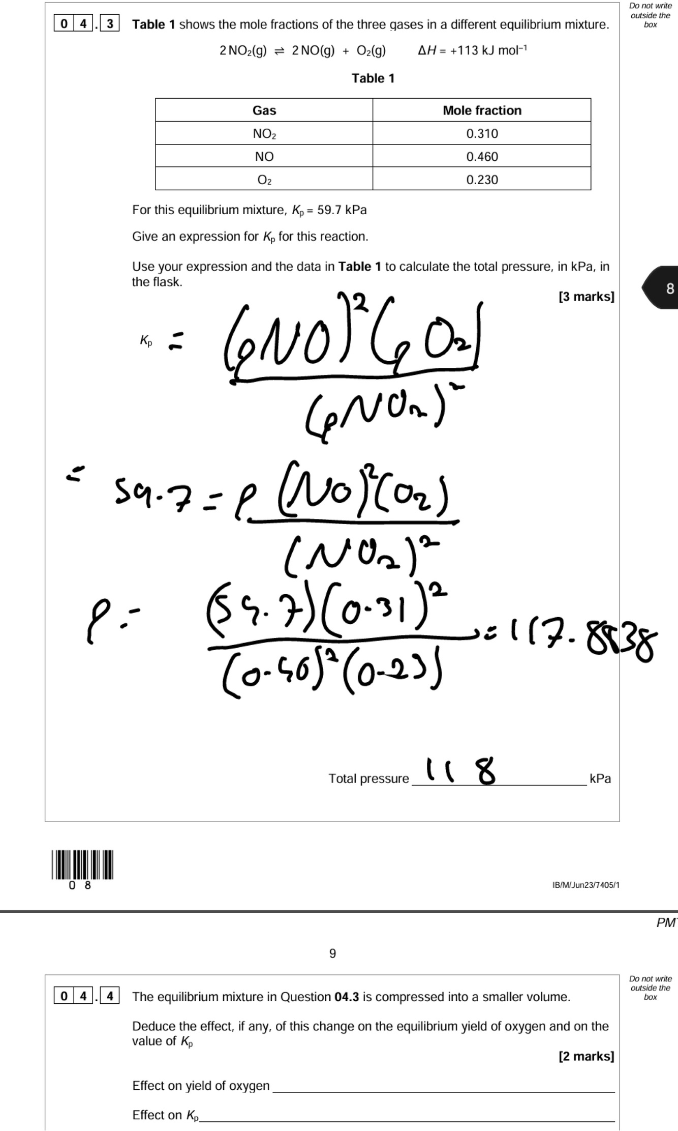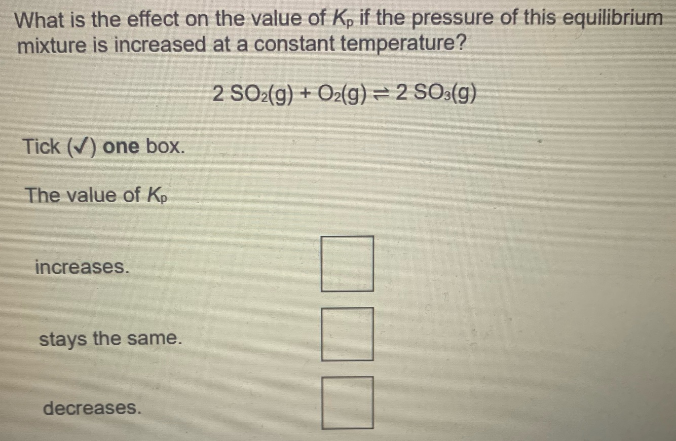 State the effect, if any, of an increase in temperature on the value of Kp for this reaction.