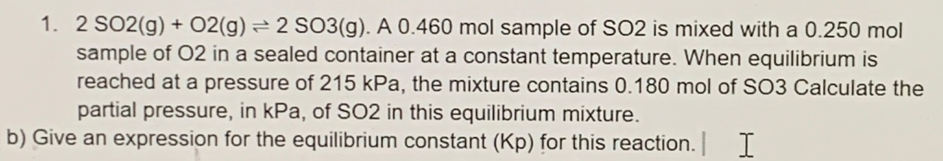 2 SO2(g) + O2(g) ⇌ 2 SO3(g)