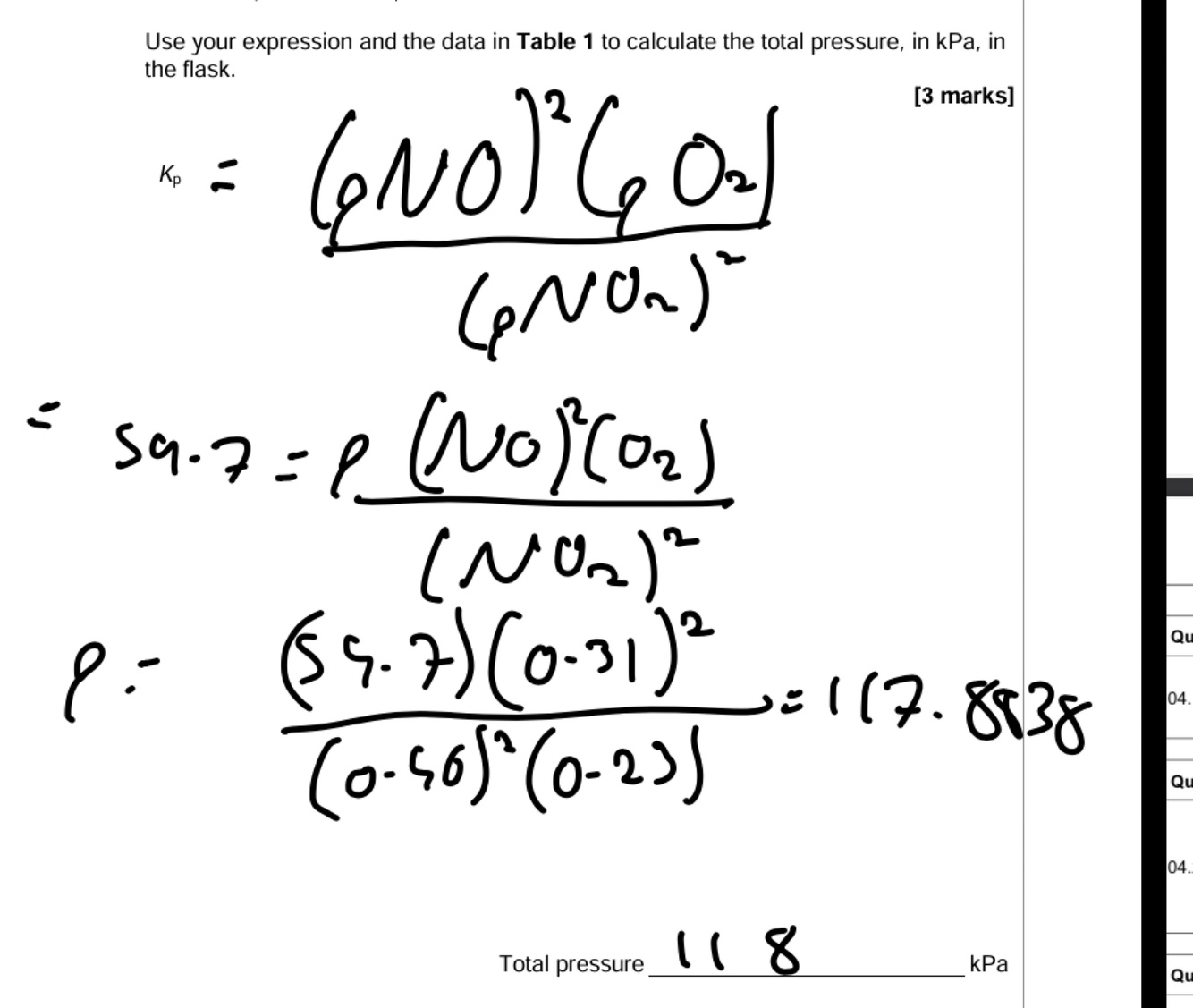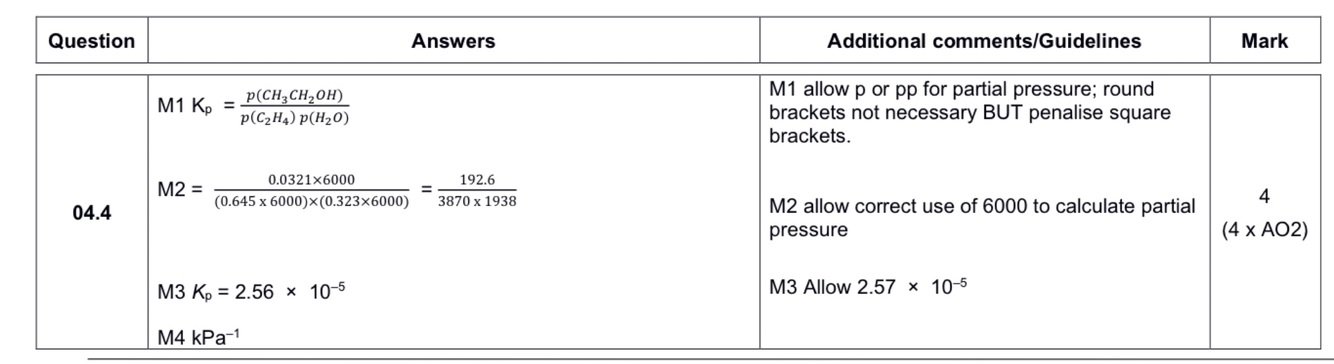 Which statement about Kp is correct for this reaction in the gas phase?