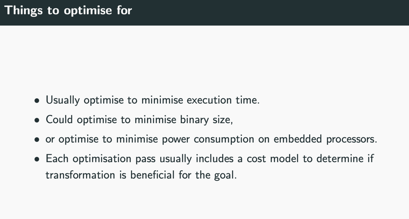 • Example tradeoff between time and power is loop unrolling (more mem = more power etc.).