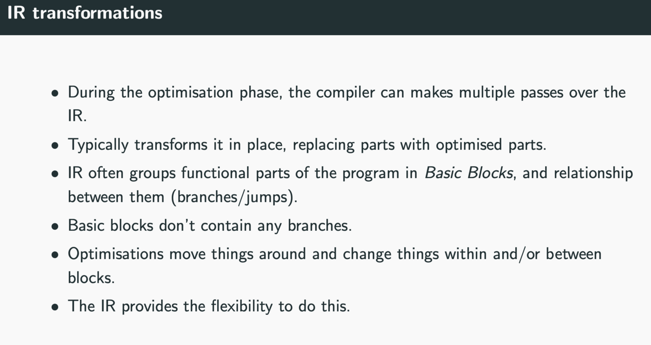 How does the optimser (compiler) transform the IR (ie AST) (and what is a basic block)