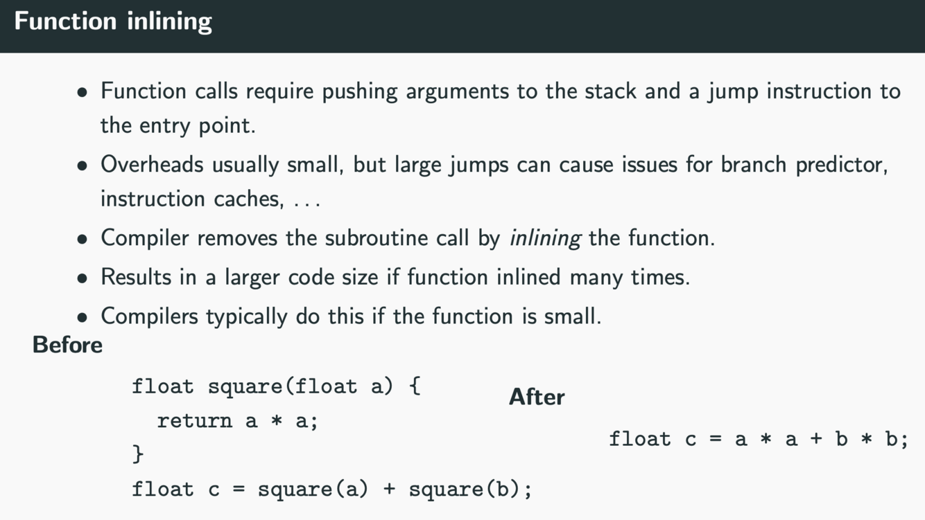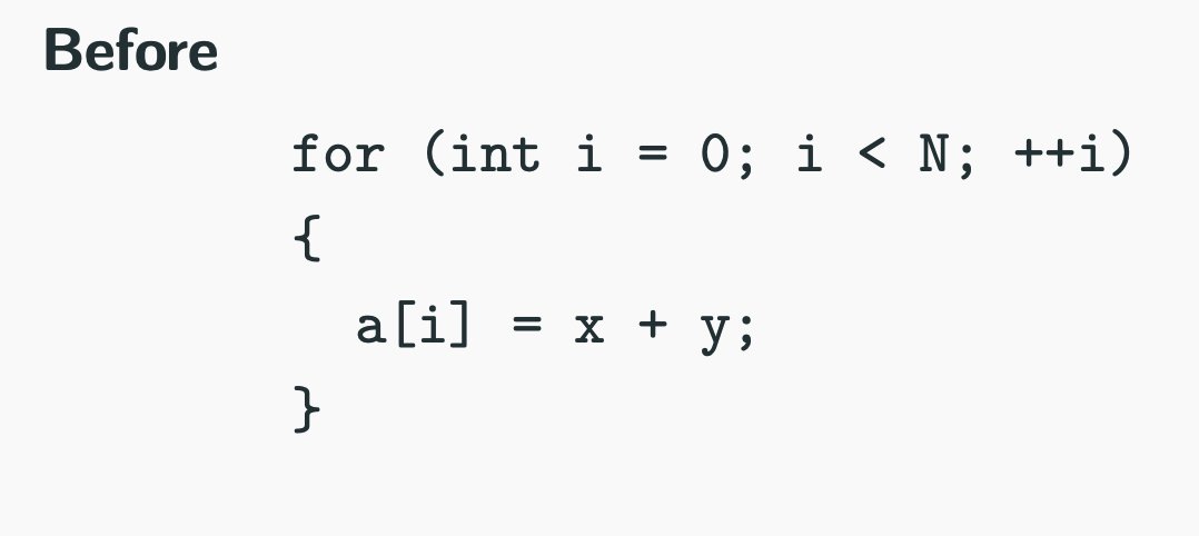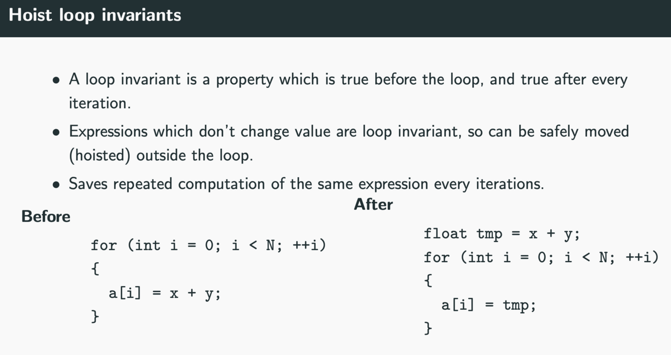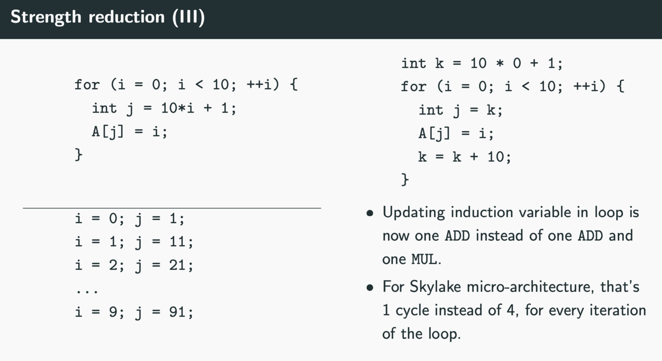• Replacing expensive loop multiplications with additions (1 cycle instead of 3)