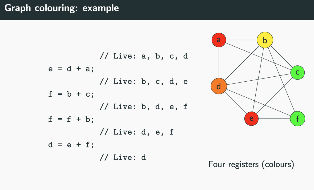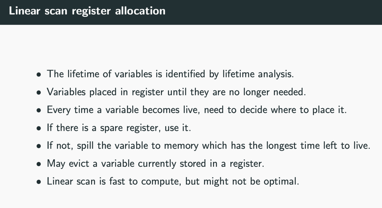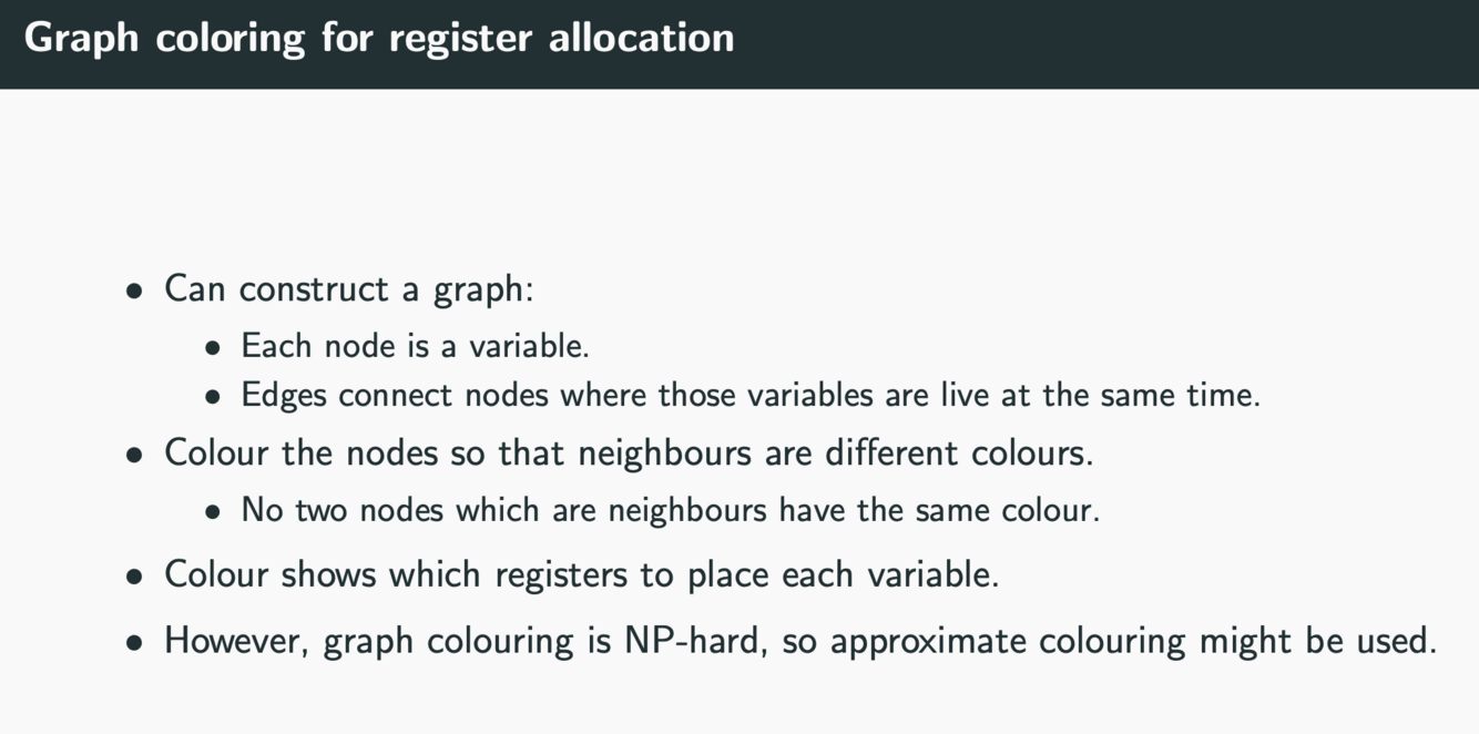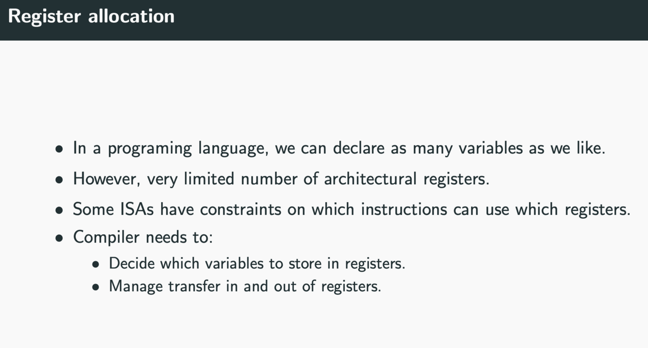 • Deciding which variable is stored in which register (or RAM / Disk)