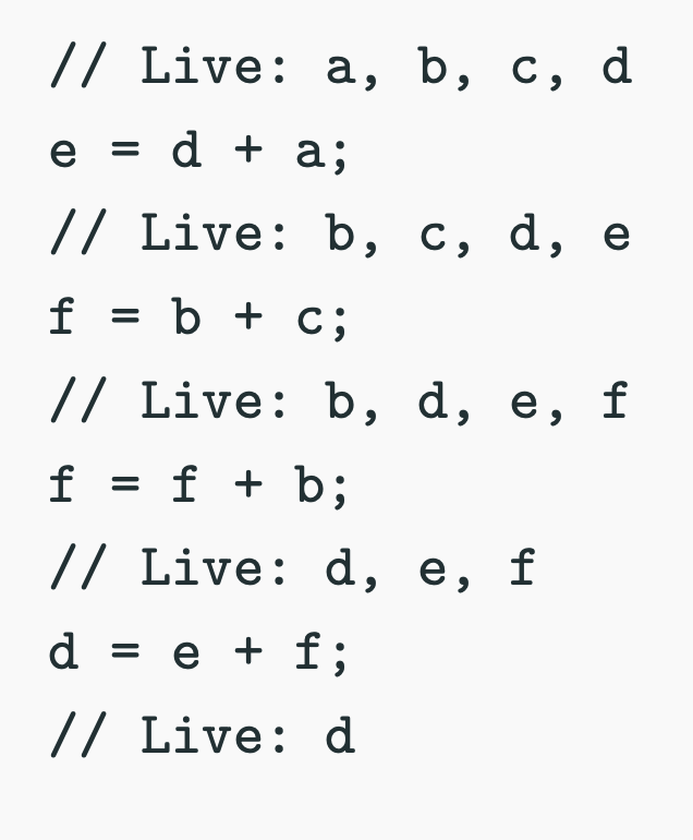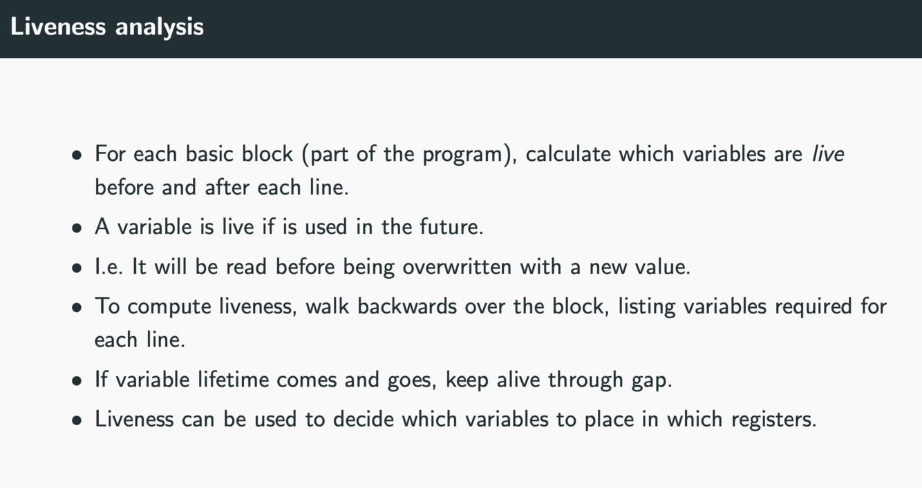 Register allocation: what is the purpose of liveness analysis and how to decide if a variable is live.