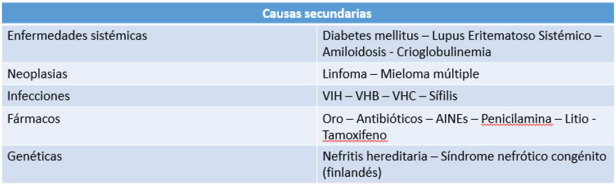 ¿Cuál es la causa más frecuente de proteinuria en rango nefrótico?