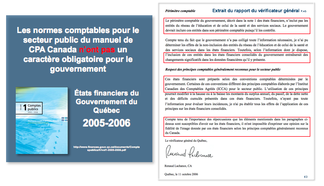 Les normes comptables pour le secteur public du manuel de CPA Canada n’ont pas un caractère obligatoire pour le gouvernement.