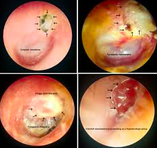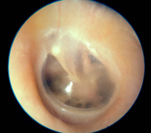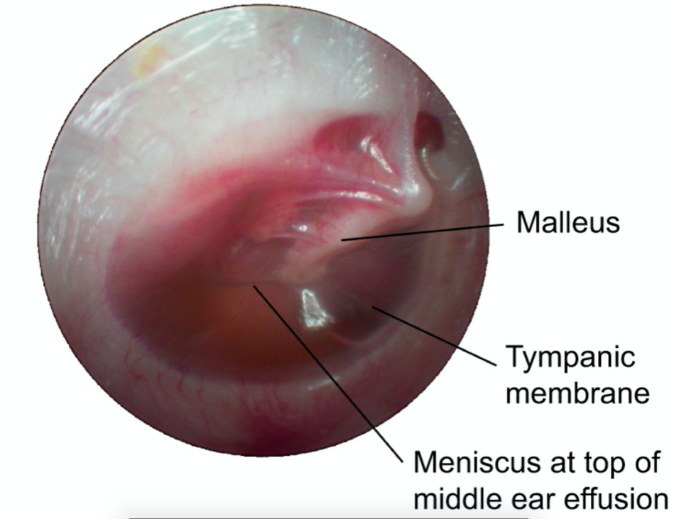 - Abnormal colour TM (e.g yellow), loss of light reflex, air bubbles, retracted concave TM