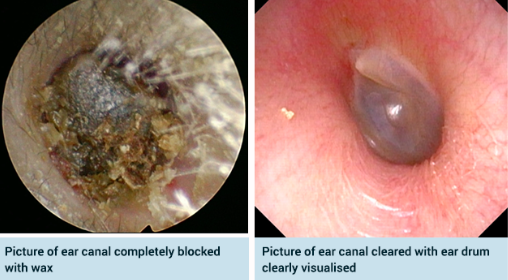 `- Remove if symptomatic, need to view tympanic membrane or someone needs a mould for a hearing aid