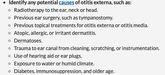 - Topical acetic acid 2% spray for 7-14 days or topical corticosteroid e.g dexamethasone spray (OTOMIZE)