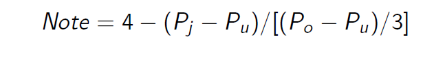 Note = 4 - ((Pj-Pu)/((Po-Pu)/3))