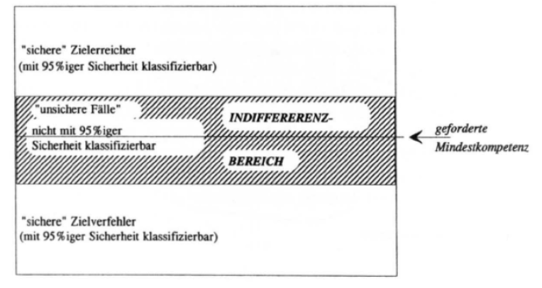 Der Indifferenzbereich ist eine rechnerische Abschätzung eines Intervalls um die geforderte Mindestkompetenz in dem die „unsicheren Fälle“ liegen