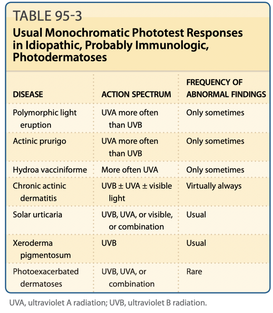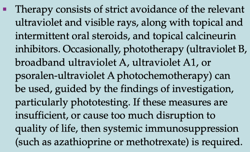 PLE/PMLE, HV, erythropoietic protoporphyria, cutaneous lupus erythematosus, or other photoexacerbated dermatoses, or other drug photosensitivities, such as to thiazides