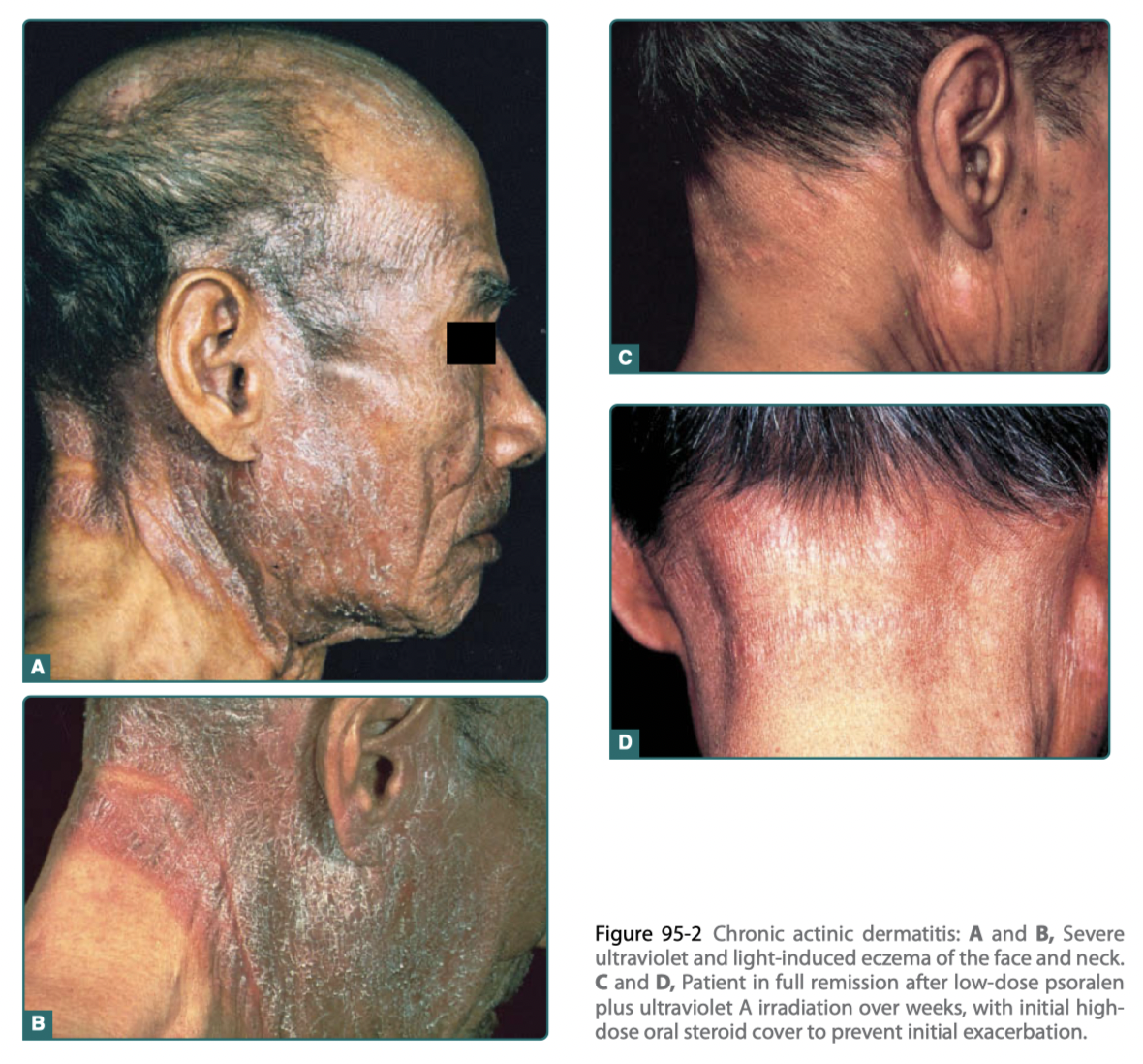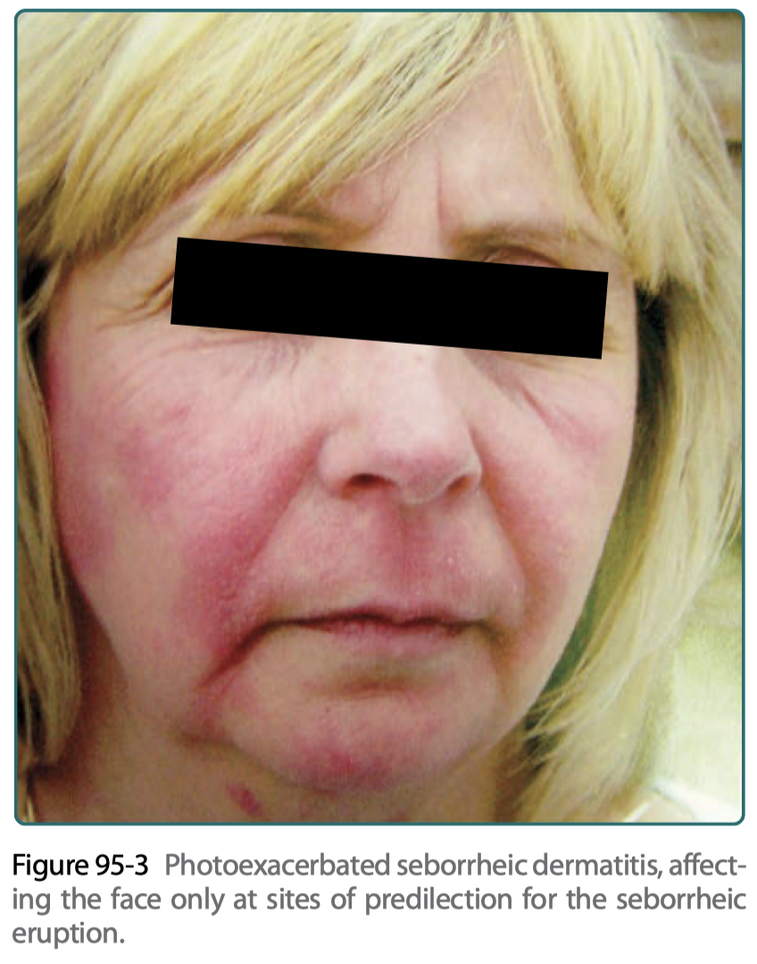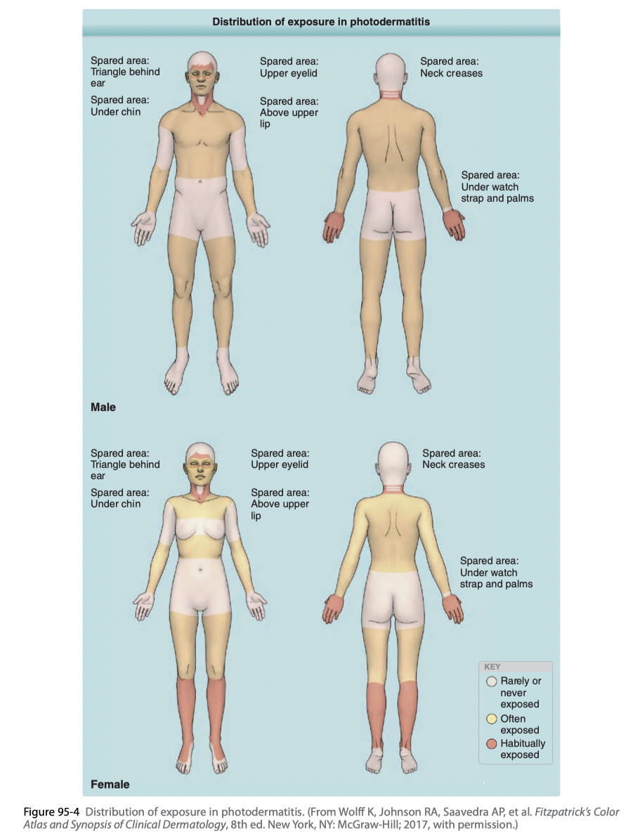 (a) sporadic or (b) persistent eruptions in sunlight-exposed areas (Fig. 95-4), or, infrequently, (c) erythroderma.