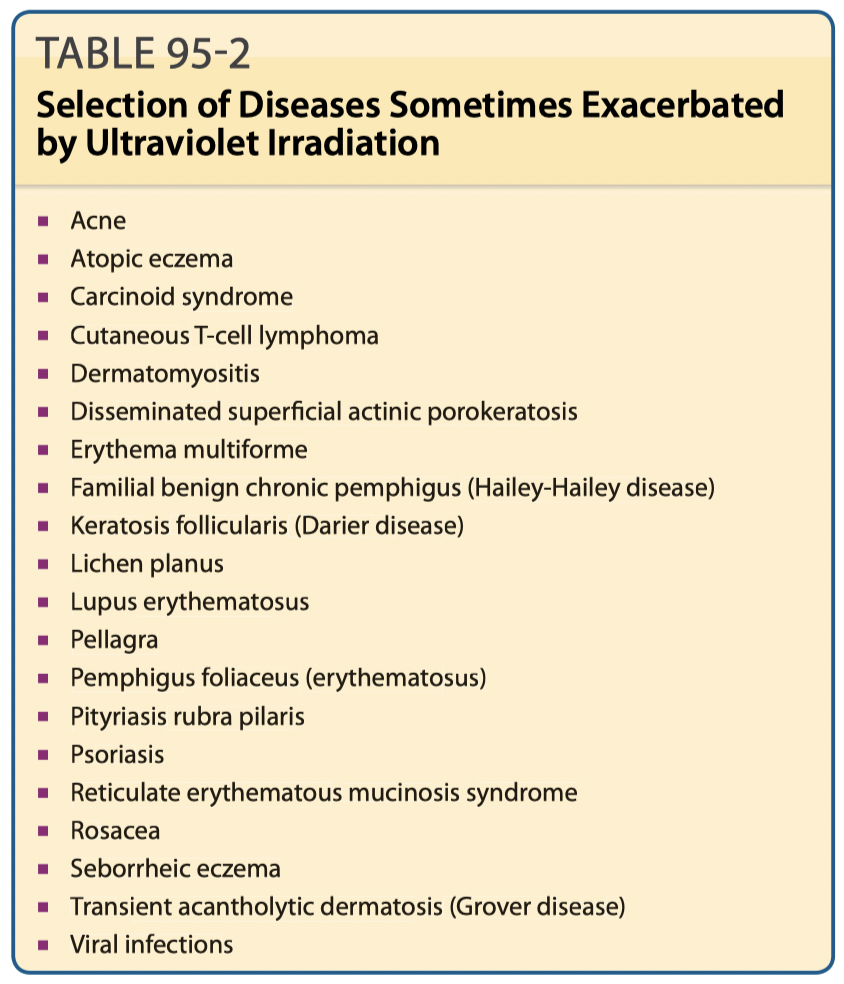 Diseases Sometimes Exacerbated by Ultraviolet Irradiation