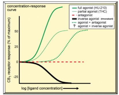 Cannabidiol (CBD) is poorly understood but some evidence suggests that it acts as a Negative Allosteric Modulator at CB1 (binds outside the binding pocket to block receptor activation)