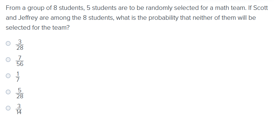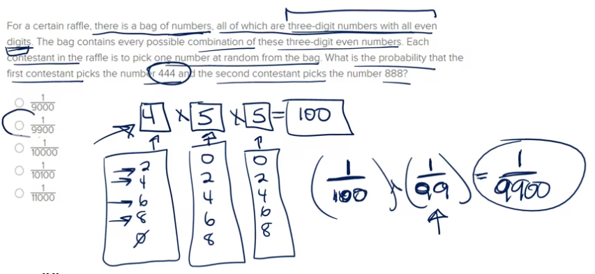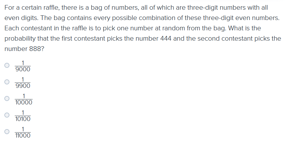 Knowing the probability of choosing certain items from a group is not sufficient information for determining ____________________________