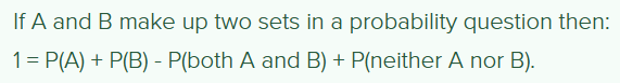 If A and B make up two sets in a probability question, then… (equation):